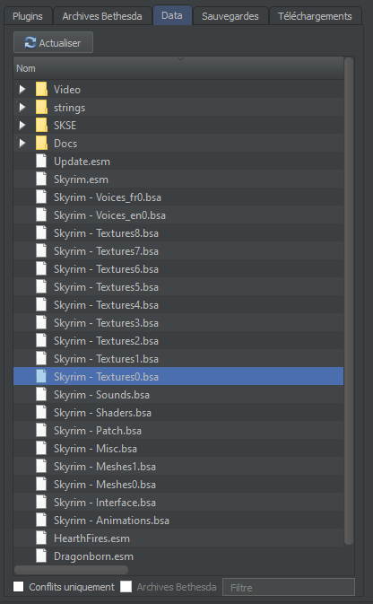 Attention, cette partie ne concerne que les utilisateurs avancés ! Les archives Bethesda sont conseillées pour des raisons de performance. Si vous en extrayez certaines pour analyser leur contenu, nous vous recommandons de recréer une archive BA2 ou BSA après coup.