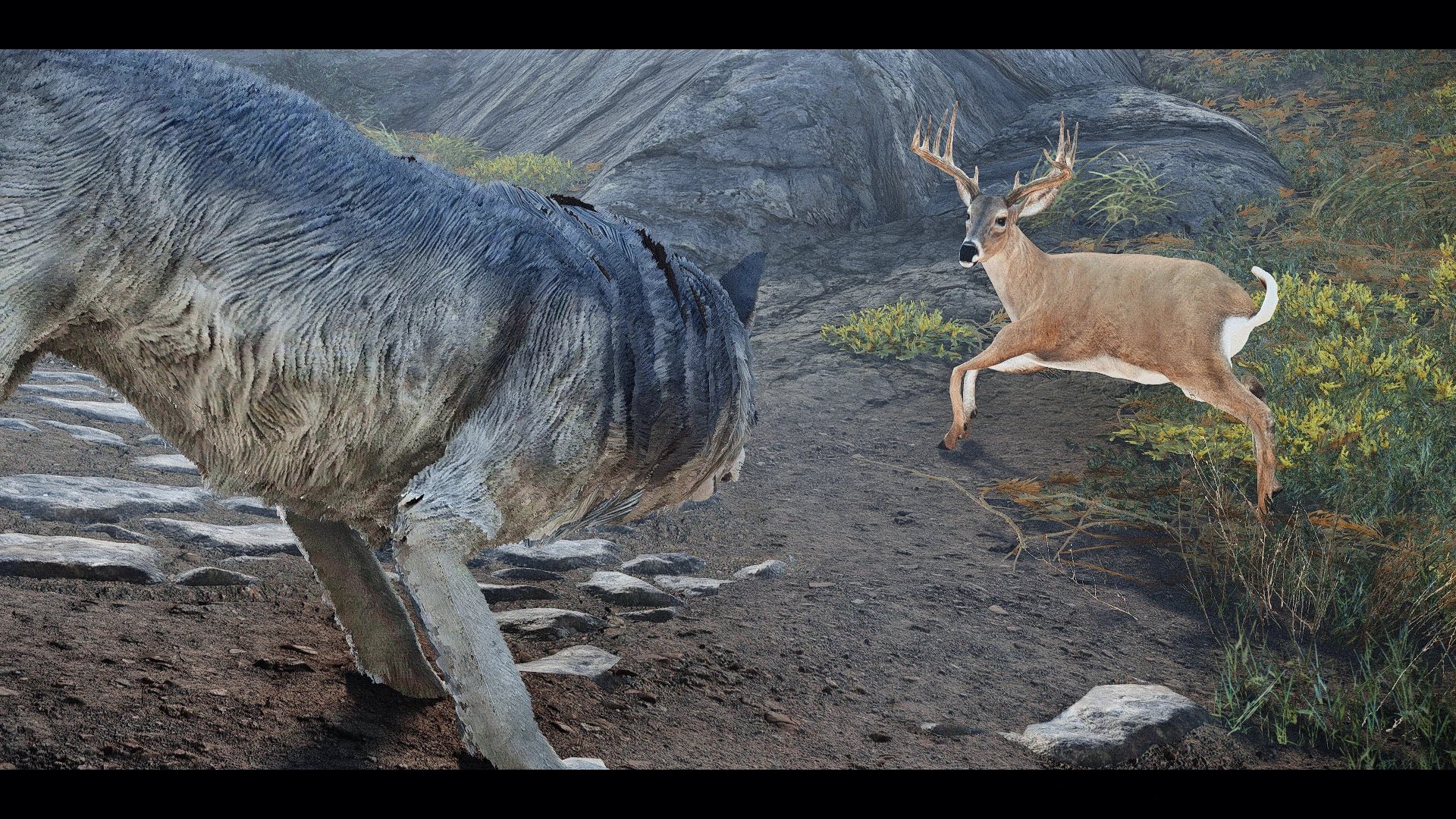 Dans la version conçue pour SkyTEST II, vous croiserez aussi une famille de trois cerfs (immortels et amicaux), un easter egg de l'auteur en référence à ceux qu'il croisait dans la forêt.