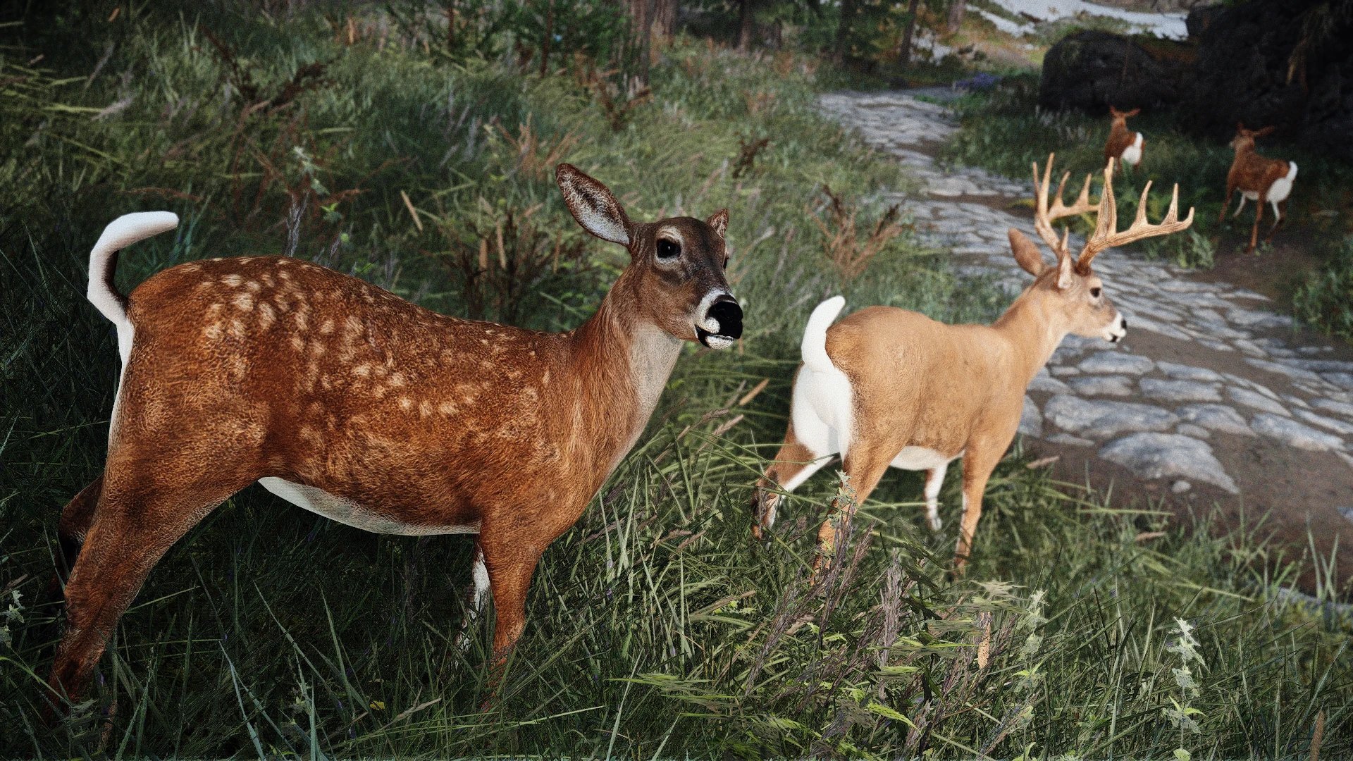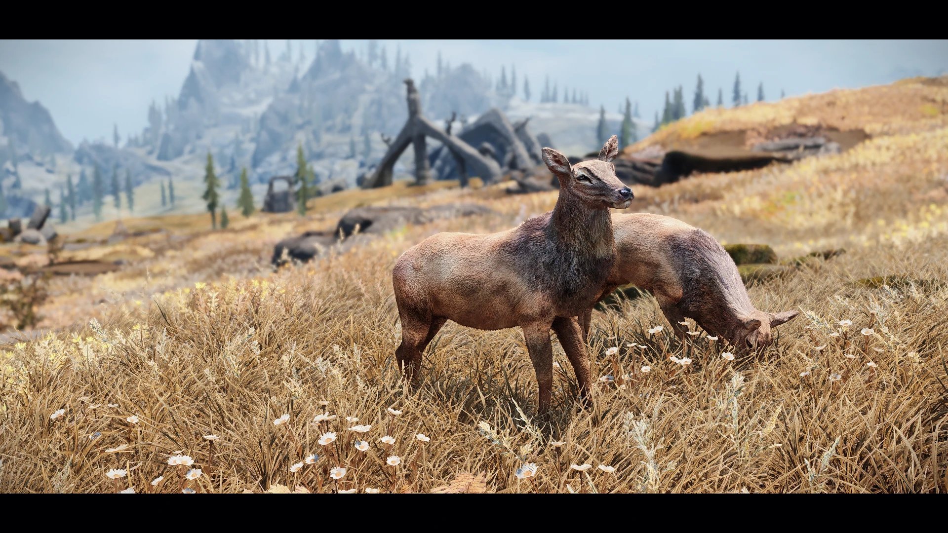 Ce mod diversifie les cervidés de Bordeciel avec de nouveaux cerfs à queue blanche et à queue noire, ainsi que leurs biches et faons, répartis selon les régions, dotés de modèles et de textures HD. Il ajuste aussi toutes les rencontres avec les élans, rennes et chevreuils vanilla pour refléter la diversité des environnements, via SkyPatcher pour éviter toute incompatibilité. Les nouveaux cerfs donnent de nouvelles peaux adéquates et une option est proposée pour Fluffworks.