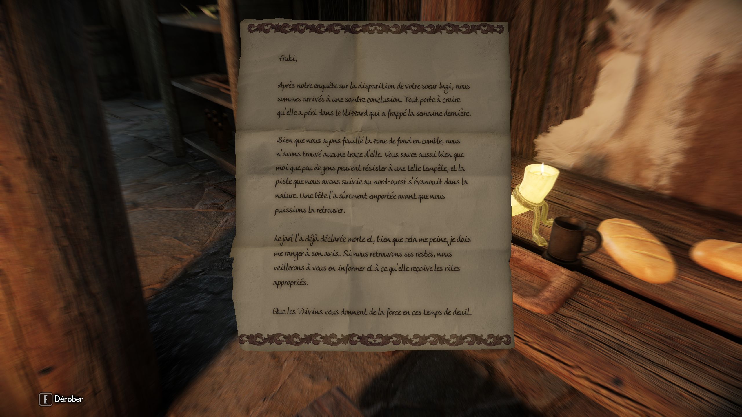 Une mini-quête permet d'aller informer Fruki du sort de sa sœur après avoir lu une lettre du capitaine Jod à l'auberge Montvent et en lui apportant son collier comme preuve.