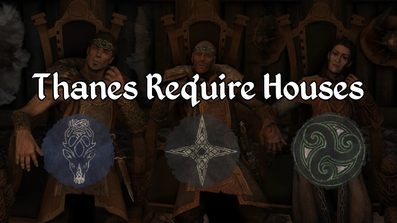 Dans le jeu vanilla, pour devenir thane d'une châtellerie, vous avez deux cas de figure : devoir être propriétaire... ou pas. Ce mod ajoute la nécessité de devoir acheter une maison pour toutes les châtelleries qui étaient concernées, à savoir Épervine, Hjaalmarche et le Clos, en plus de rendre service aux habitants.
