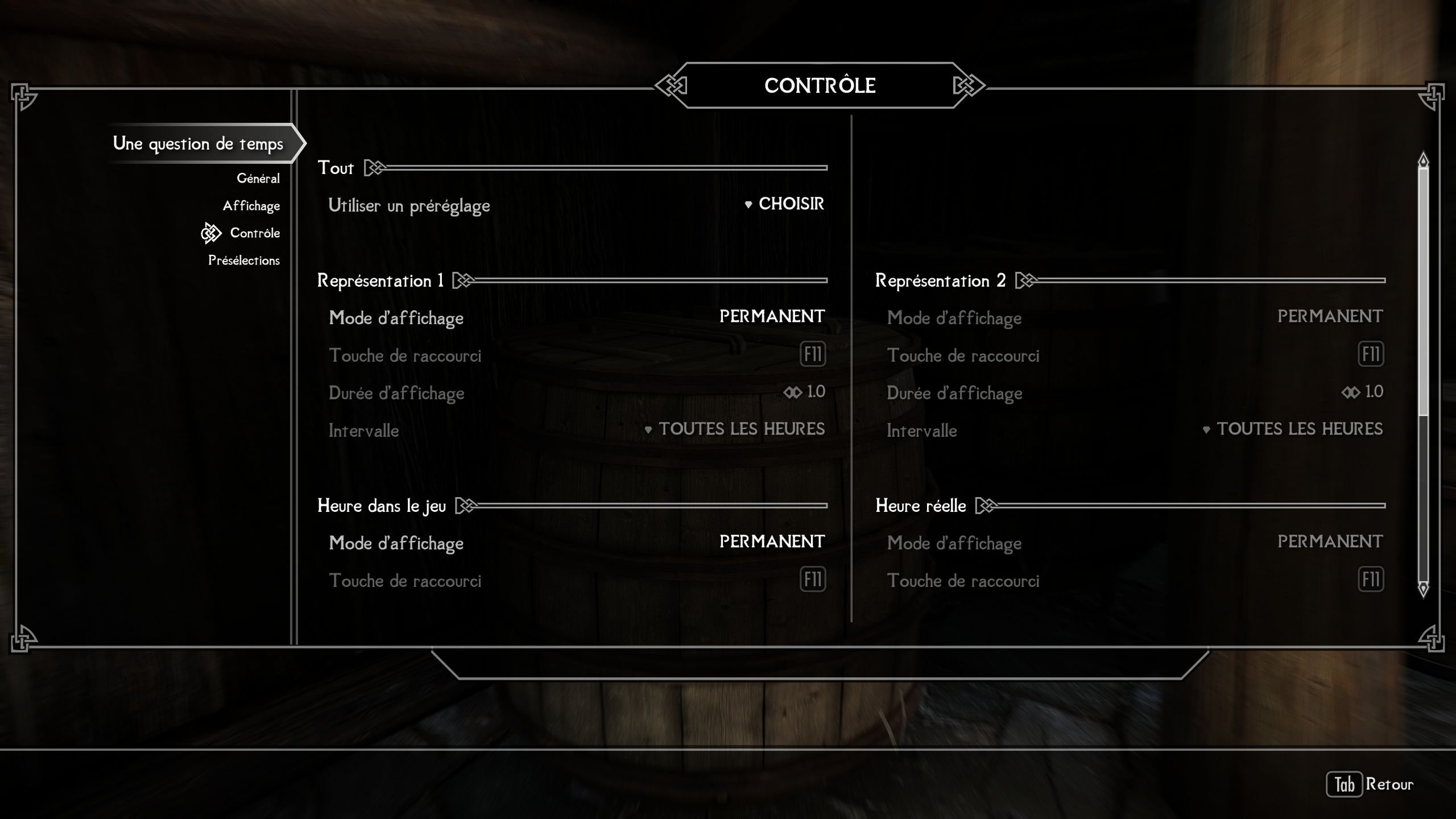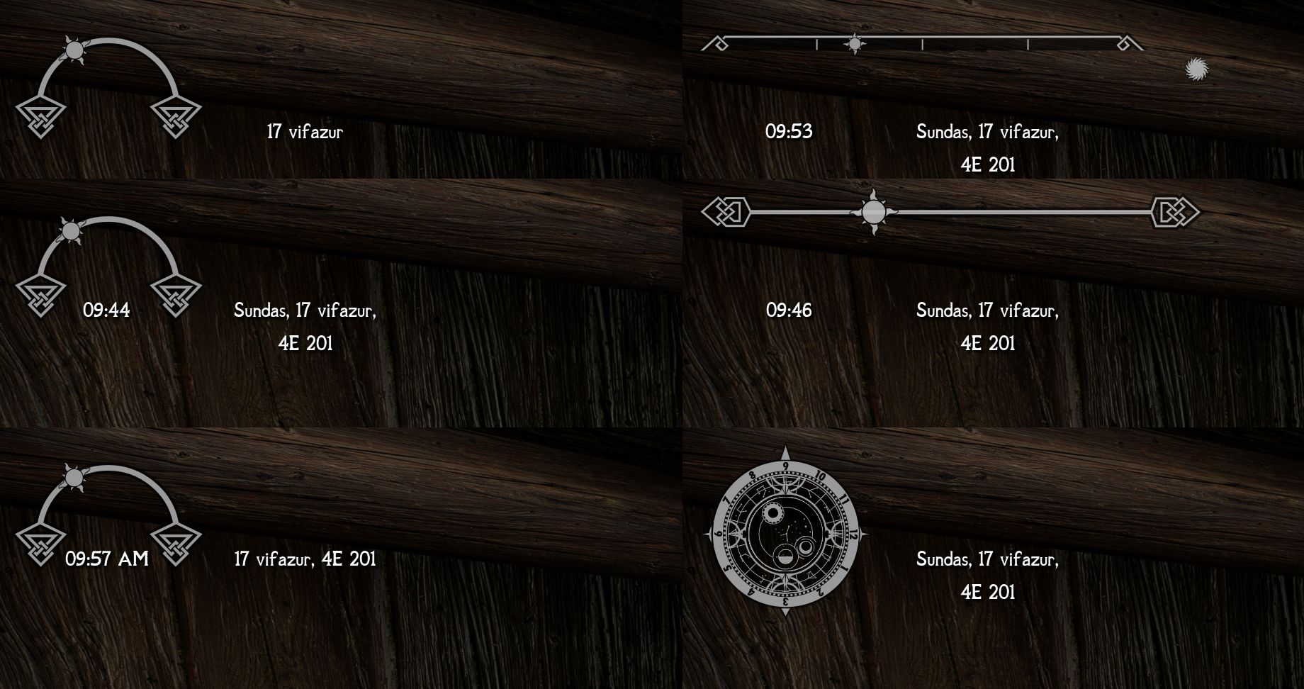 Ce mod ajoute des widgets à l'interface utilisateur pour afficher différentes informations liées au temps, configurables dans le MCM.