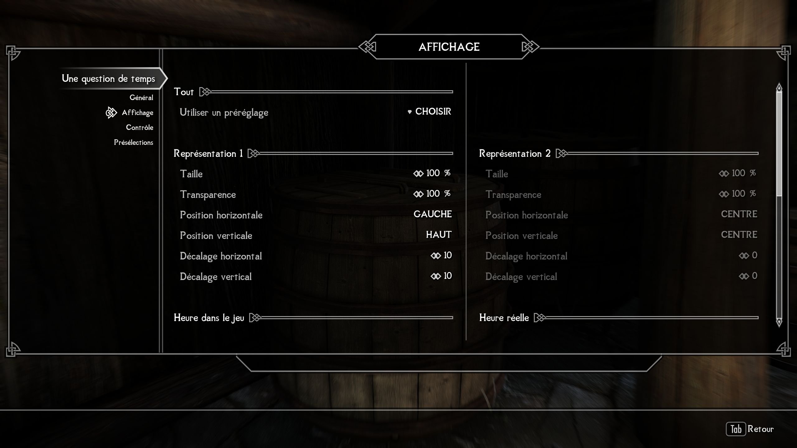 • L'heure actuelle dans le jeu peut être affichée via un symbole et une représentation textuelle.