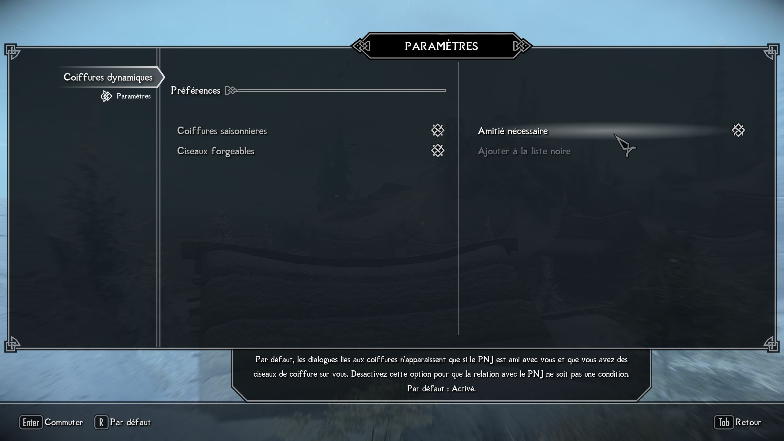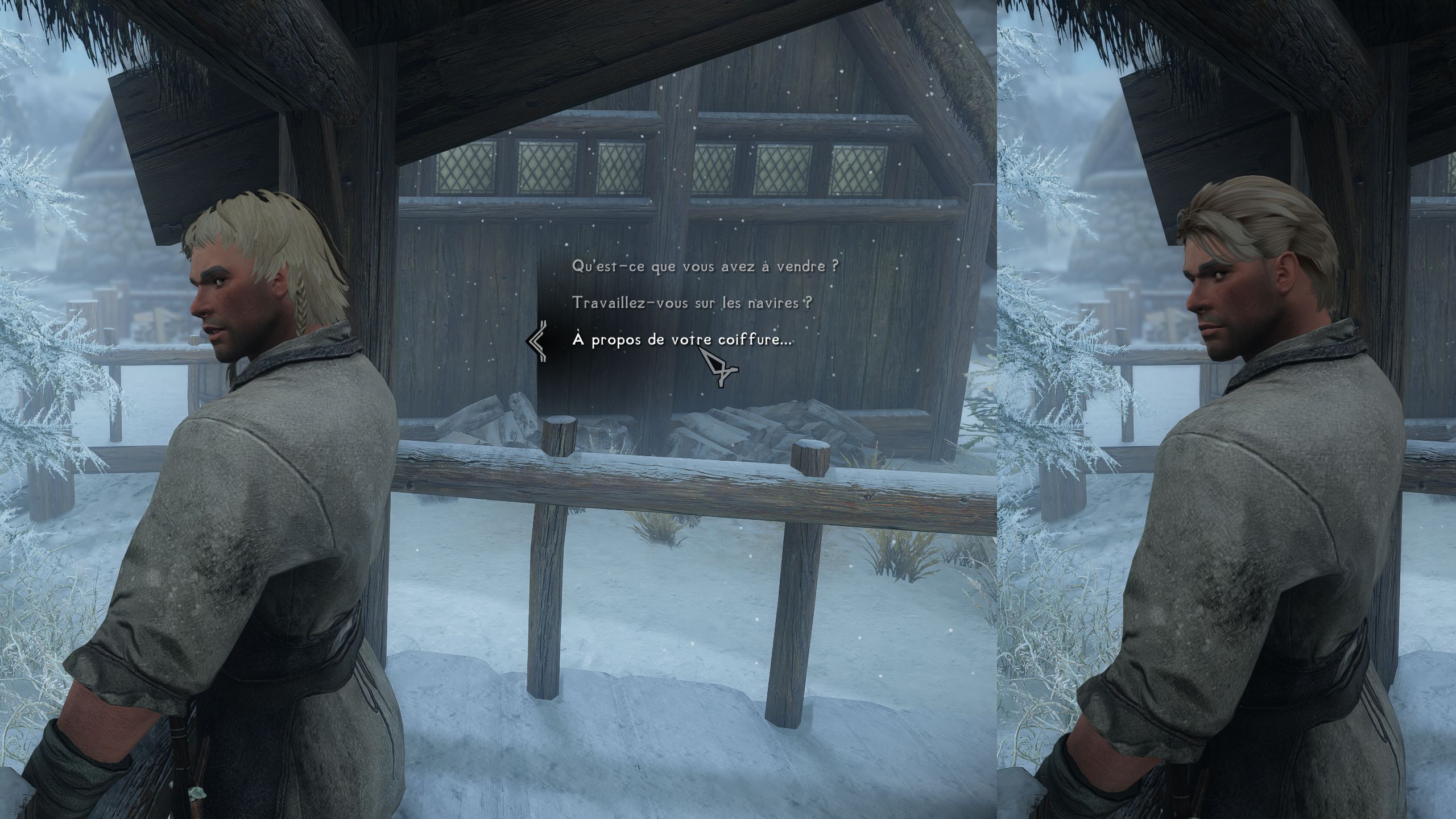 Le mod supporte par défaut les coiffures lore-friendly de Vanilla Hair Remake, mais tout mod avec le support approprié (FormList) sera pris en compte.