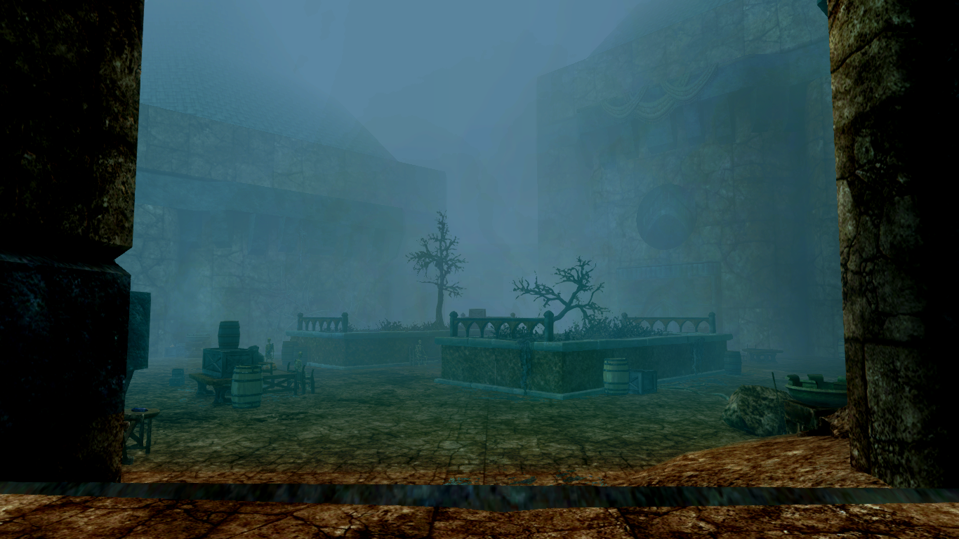 Une capture d'écran de la cour extérieure, qui mène à la tour où repose Catalyse dans le mod l'Ultime cataclysme.