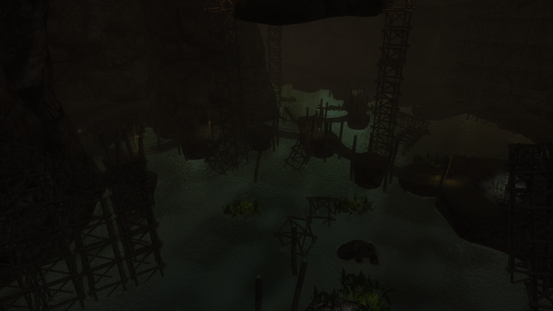 Une capture d'écran du tunnel principal de la mine de Creuseroc, dans le mod "Les Roues de Lull".