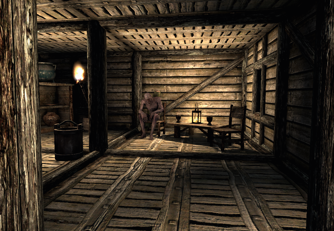 Une capture d'écran du Mendiant en Chef au premier étage du Bidonvilles d'Havreglace dans le mod Vigile.
