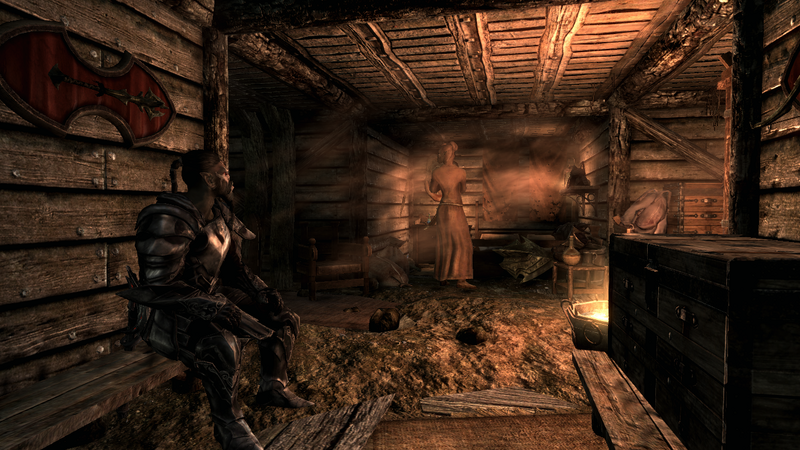 Une capture d'écran d'Ogrul, le cherf de guerre, et Urzuk, son épouse, dans la série de mod "Combattre le Thalmor".