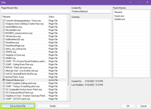 - Les ressources : un ensemble de fichiers permettant au mod d'utiliser des ressources extérieures. Ce sont les meshes (fichiers NIF), les textures (fichiers DDS), les scripts (fichiers PEX) et les animations (fichiers HKX). Les meshes ont besoin d'être convertis ; il est recommandé de convertir également les textures dans un format plus adapté à SSE, à savoir le BC7. Ces ressources sont parfois contenues dans une archive BSA qui doit également être refaite : un BSA Oldrim fera planter SSE !